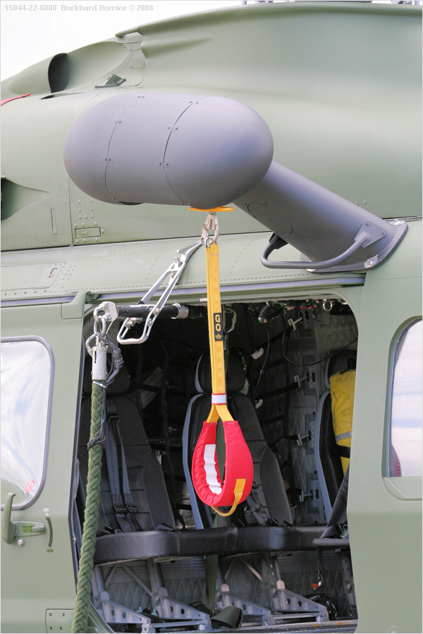 Rescue hoist and sling, fast rope attachment.