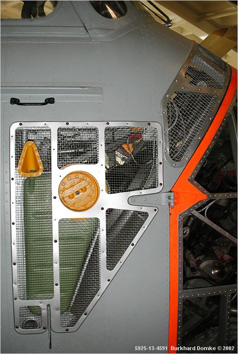 Fuselage viewed from starboard Note oil tank (green) and oil tank filler cap (yellow).