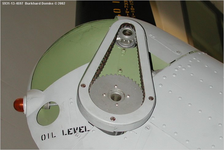 Tail rotor, final transmission drive chain detail (cover left off)
