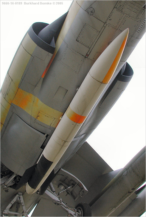 'Special weapon practice unit' is the euphemism used at the time for this shape representing a 1-Megaton class B-43 nuclear bomb occupying the centerline station. |
