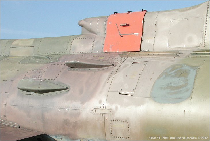 Tail section viewed from port. Note engine bay cooling air scoops (port side only)