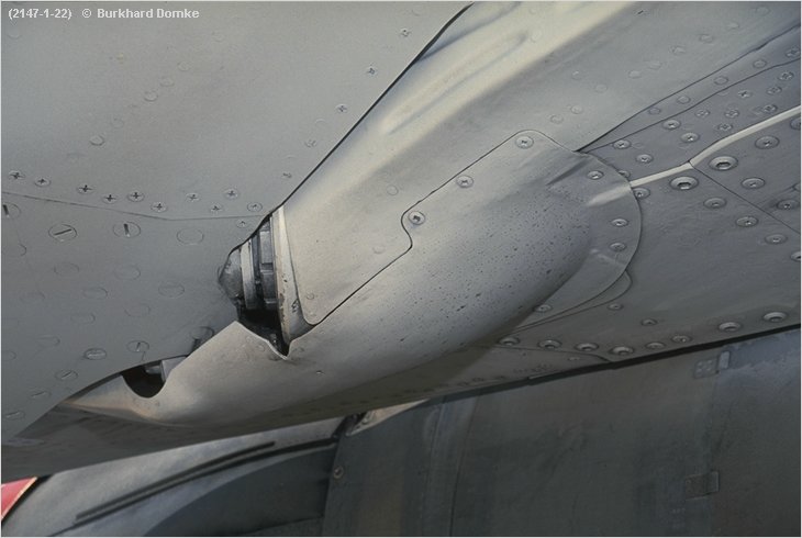 Starboard horizontal stabilizer hinge viewed from ahead and below. |