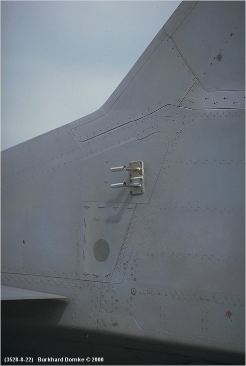 Port vertical tailplane detail. Twin air data probe is related to the artificial feel system. |