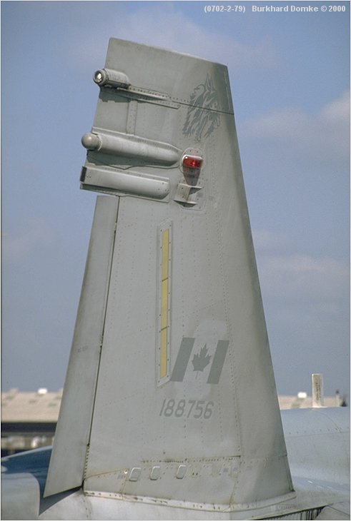 Starboard vertical tail with tail navigation light, radar warning antenna, fuel dump nozzle (top down). The red light is a strobe.