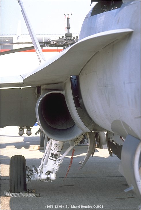STBD intake and main landing gear from ahead. Note curvature of LEX and and arrangement of intake boundary layer diverter.