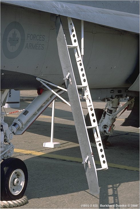 Retractable boarding ladder in extended position. Note open safety lock latches and v-shaped bracing.