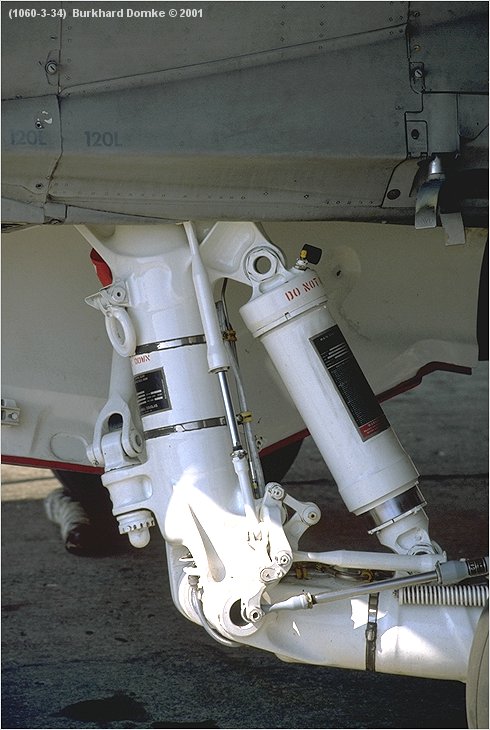 Port main landing gear leg close-up.