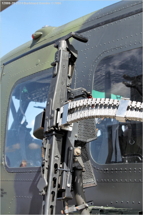 Left-hand XM23 gun mount. MG3 and ammo feed chute detail. |