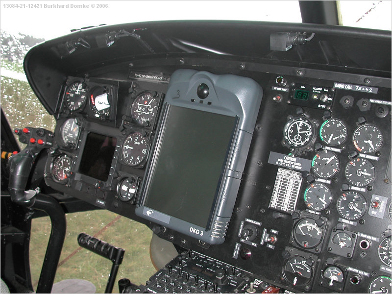 Left-hand instrument panel is dominated by the DKG3. Also note square GPS display at left. DKG3 is a portable kneepad system providing a digital moving map function. |