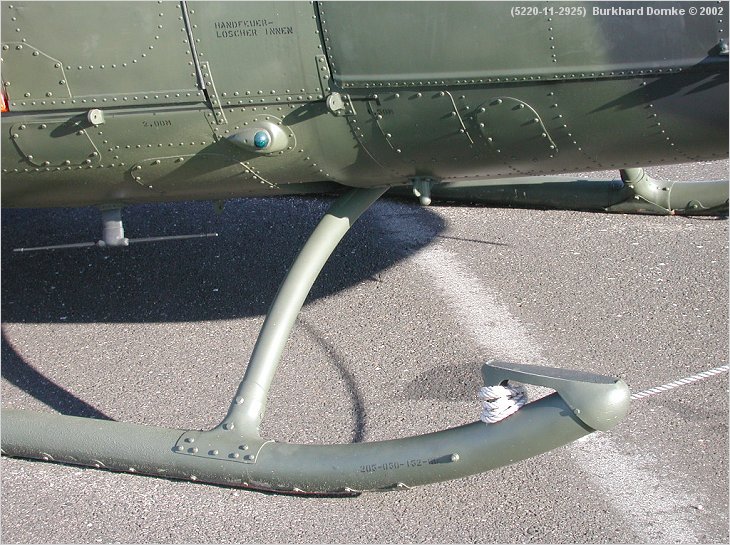 Front end detail of skid. Note lower starboard position light and antenna aerial.