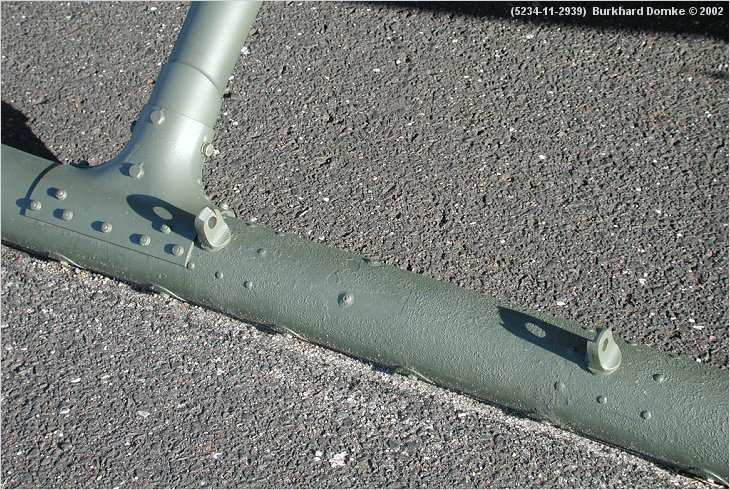 Landing skid detail (viewed from starboard). Looks like attachment fittings for auxiliary wheels to me.