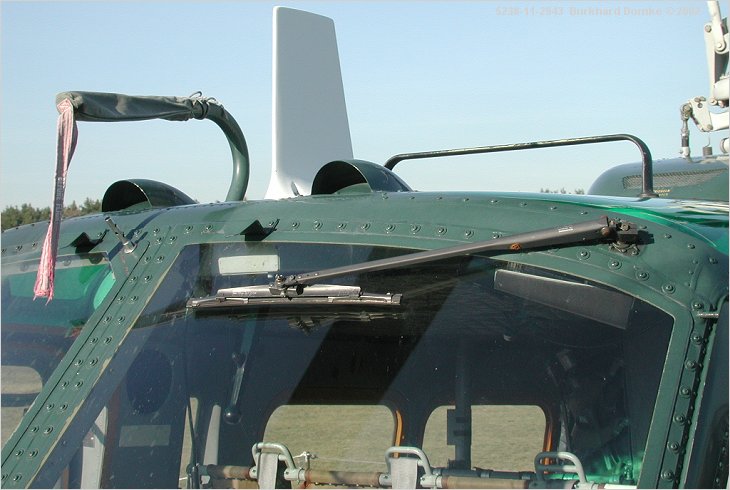 Port windscreen wiper. Note rooftop arrangement of pitot, scoops, and antennas.