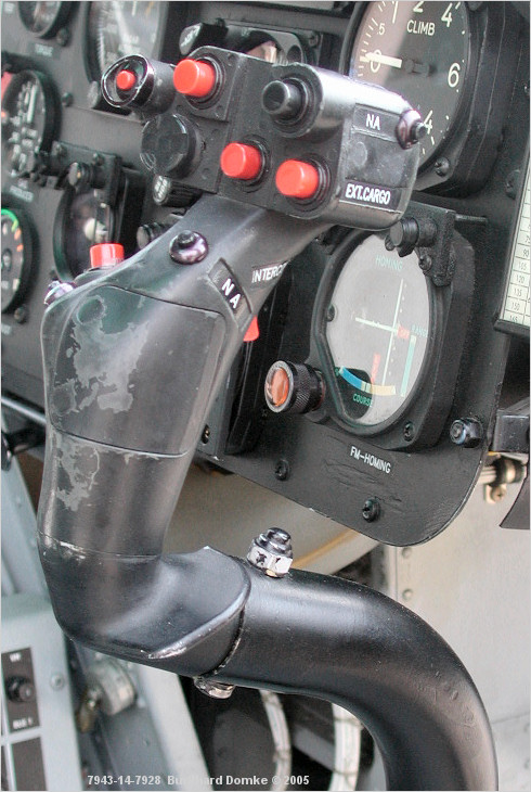 Cockpit interior, pilot's cyclic control stick detail.