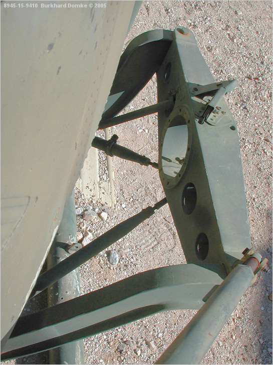 Starboard external stores pylon and mounting struts viewed from above and rear. |