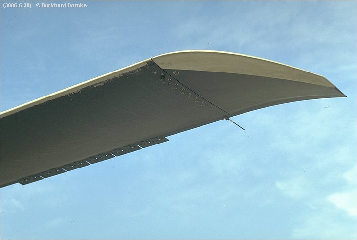 Blade tip is very similar to that of the NH-90. Note trailing edge tabs and electrostatic discharger.