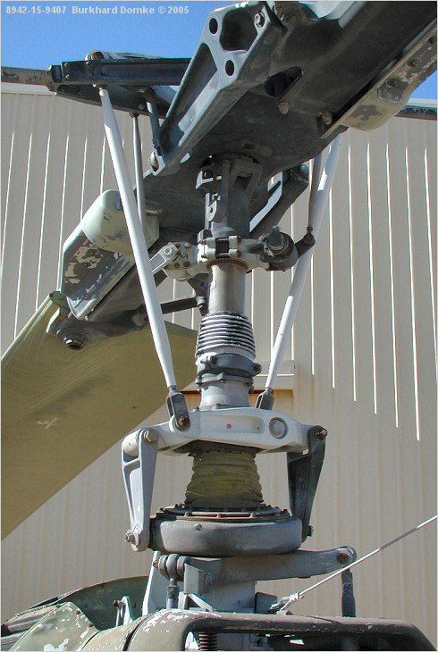 Main rotor head, mast, and swashplate assembly.