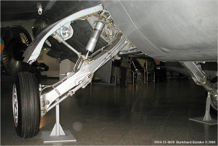 Starboard main landing gear viewed from ahead (front is to the right). |