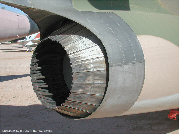 Rear right quarter view of engine exhaust nozzle. Being the two-seat version of the C, the F-104D has the same General Electric J79-GE-7 engine. |