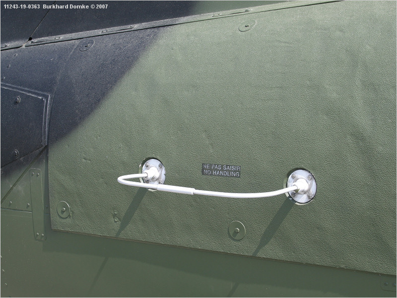 White aerial is a VOR/ILS antenna which is also present on the port side.
