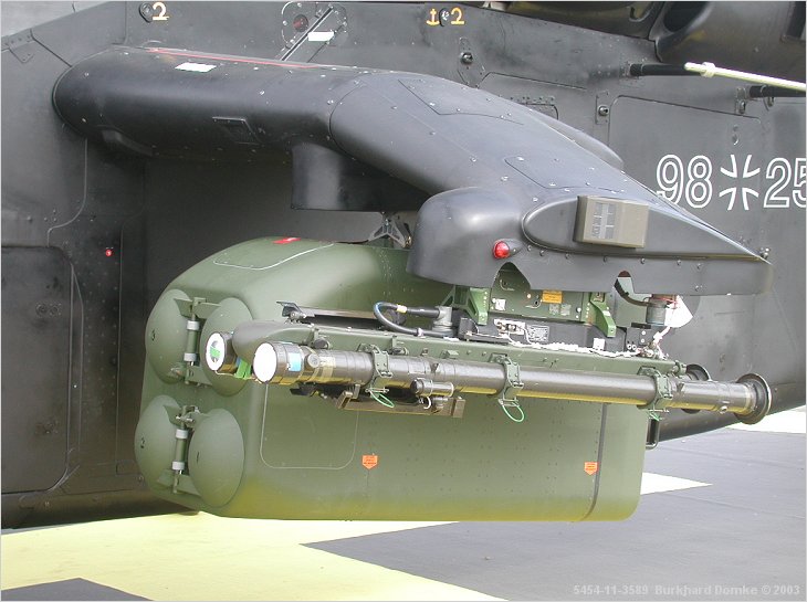 stub wing mounting a Trigat ATGM container and a dual AIM-92