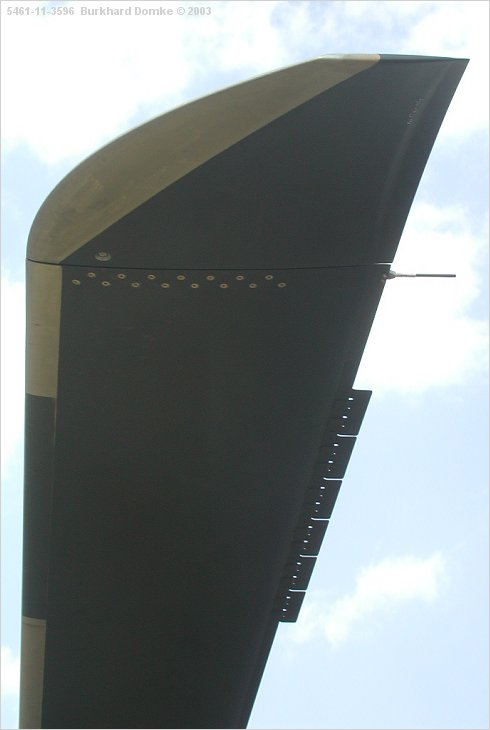 Main rotor blade viewed from below. Note trailing edge trim tabs and single electrostatic discharger.