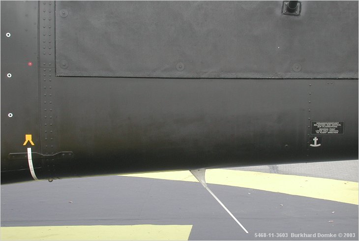 Ventral whip antenna mounted below the tailboom (front is to the left) |