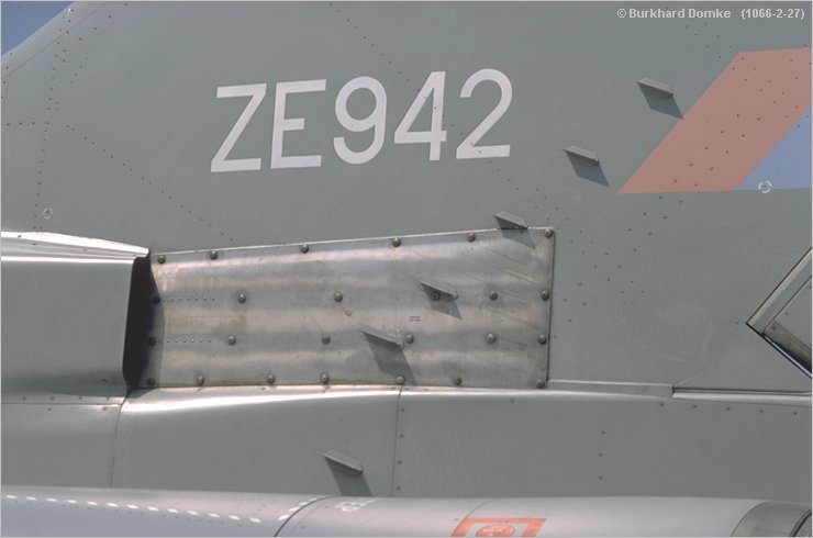 Vertical tail close-up. Note vortex generators and doubler acting as thermal shield.
