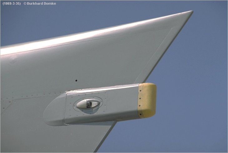Close-up of the fin-tip mounted RWR fairing.