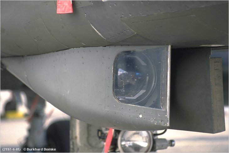 Ferranti LRMTS close-up. Laser range-finder and marked target seeker is located starboard besides the nose wheel well.