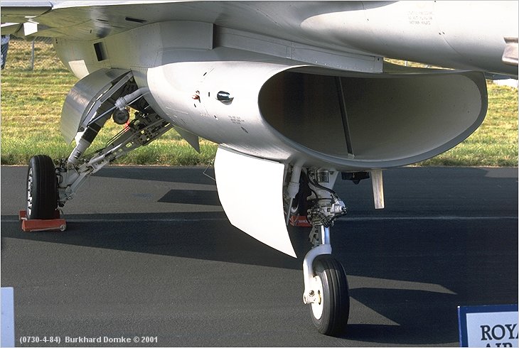 Engine intake and landing gear. This is the 'small' intake associated with P&W engines up to Block 42.